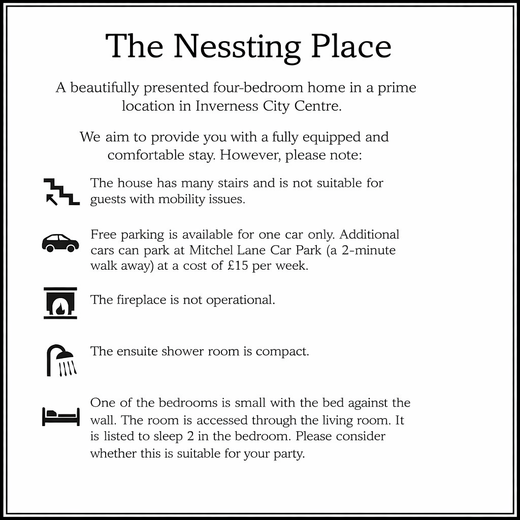 The Nessting Place is a homely retreat in Inverness city centre. The spacious period apartment retains many original features, but it is decorated with a few interesting twists. The Nessting Place provides a lovely warm welcome, I hope you love it as much as I do.